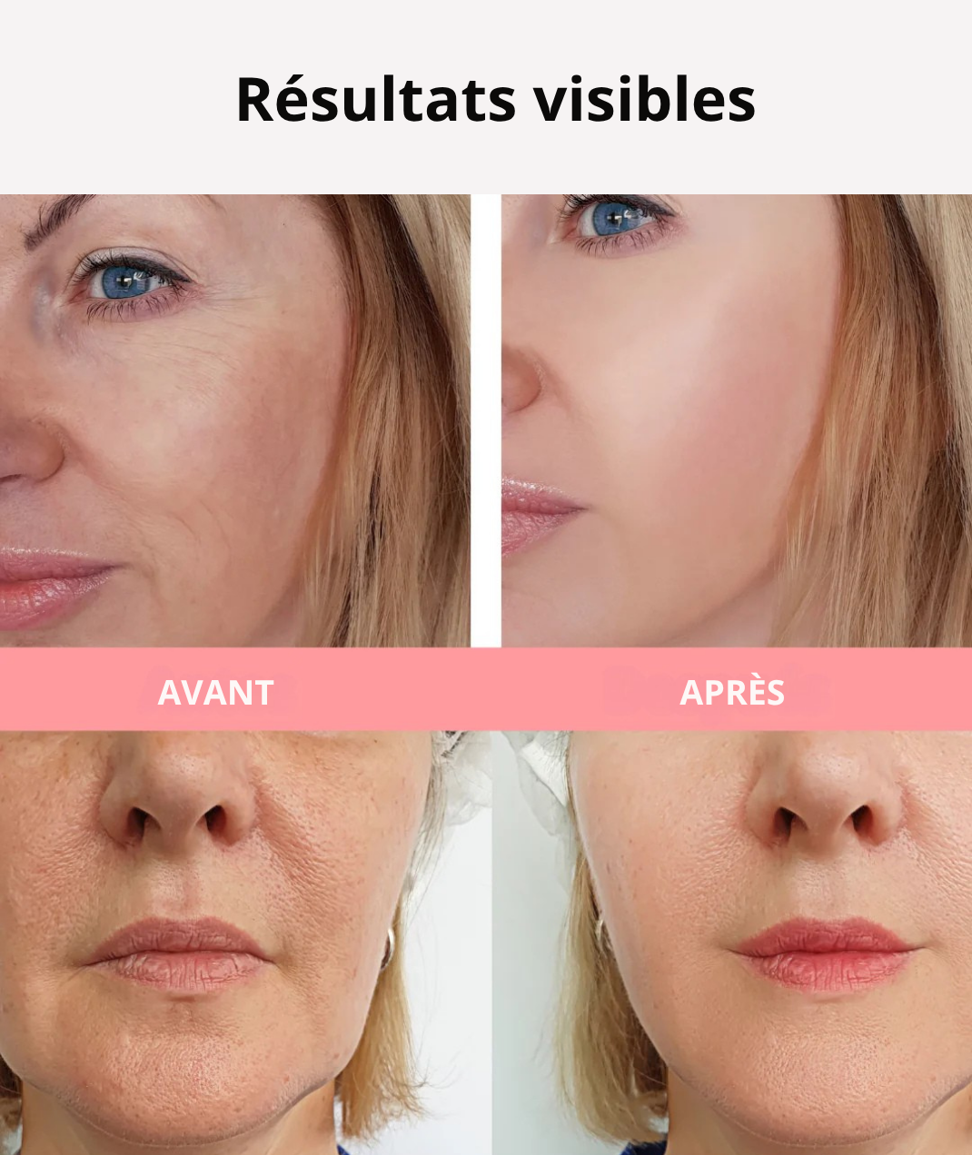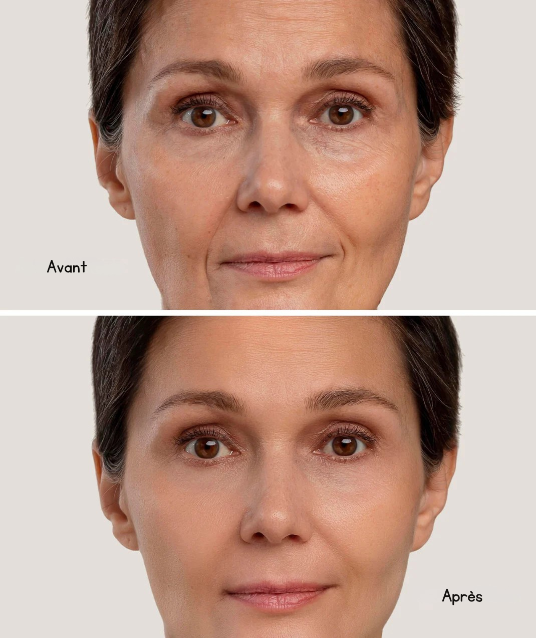 Les premiers effets se voient souvent dès 2 à 3 semaines d’utilisation régulière, avec une peau plus ferme, plus lumineuse et visiblement lissée.
